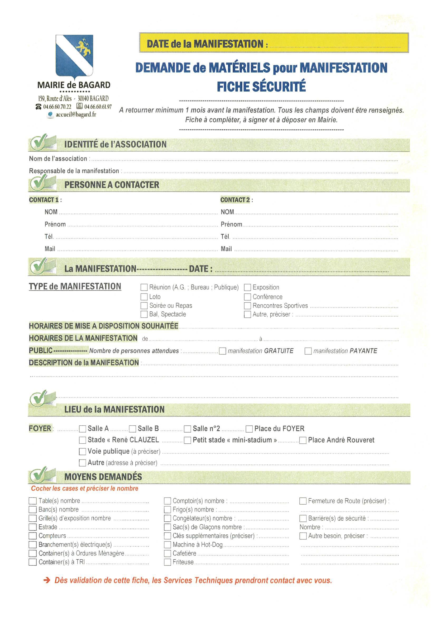 Déclaration de manifestation / Demande de matériel